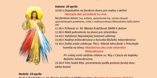 Všetkých ctiteľov Božieho milosrdenstva a sv. sestry Faustíny srdečne pozývame na duchovné cvičenia, ktoré sa uskutočnia od 17. do 19….